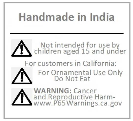 Unless specified by USA importers and buyers, and in compliance with the laws of the State of California, our products carry the attached warning on all products sold in the USA